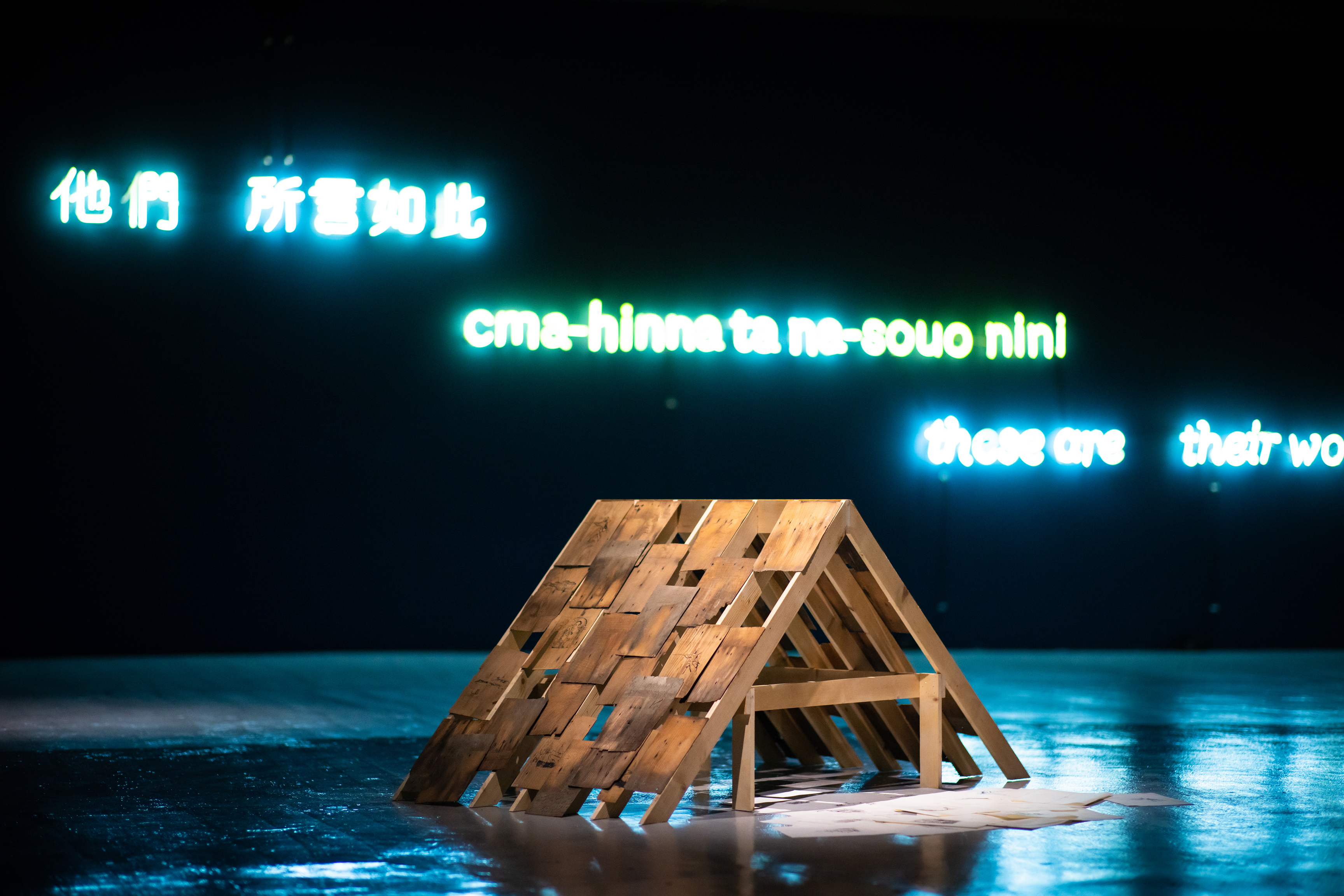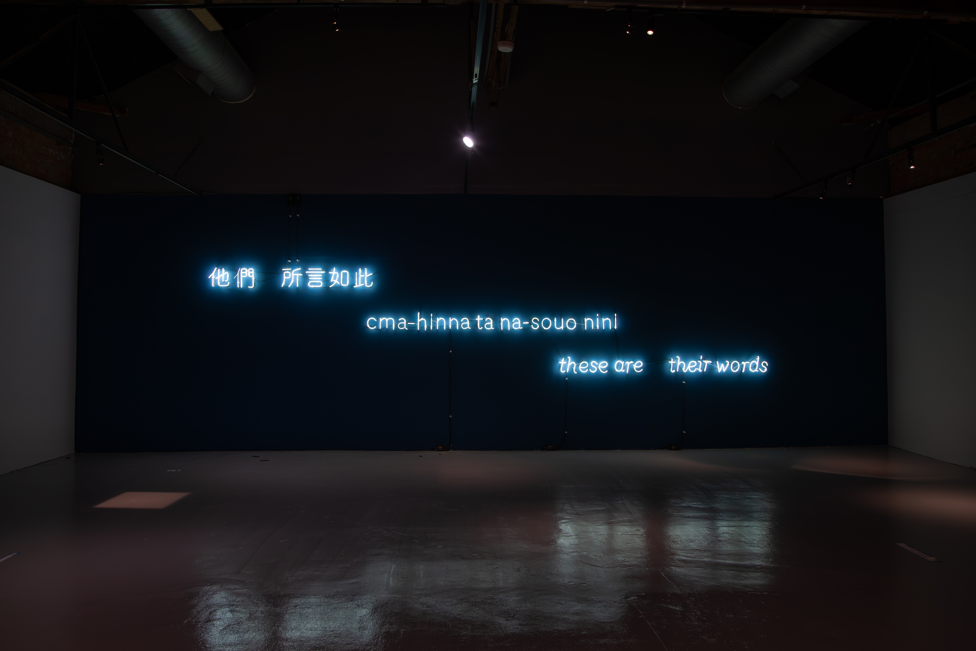 Throughout the exhibition, pronouns like “you,” “we,” and “they” appear in various languages, excerpted from different historical texts. These pronouns do not point to specific groups or nations but remain intentionally open and ambiguous to explore identity, relationships, and the instability of language.